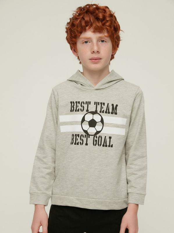 Серая толстовка с капюшоном с принтом, вязаная тонкая толстовка.