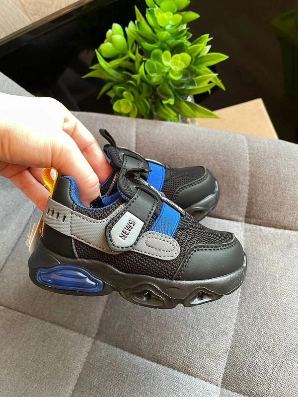 Стильные кроссовки от Tom.m.🖤💙. Любимая мигающая подошва). Фиксируются с помощью липучки. По обхвату есть резиночка. Стелька кожаная с супинатором. Легенькі. 21р. - 13,5см22р. - 14,0см23р. - 14,5см23р. - 14,5см24р. - 15,0см24р. - 15,0см