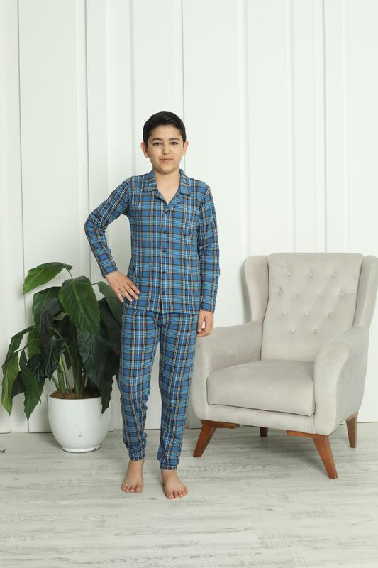 Подростковый комплект на мальчика на пуговицах - клетка - family look
