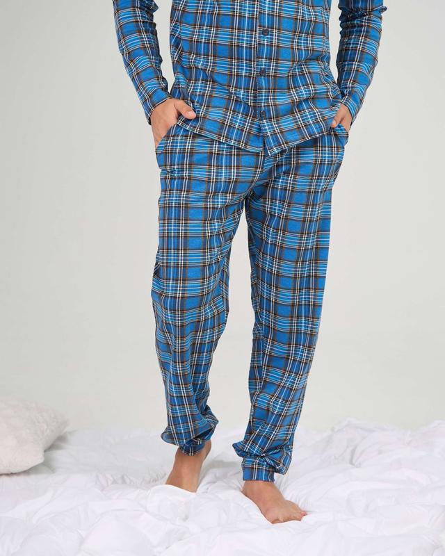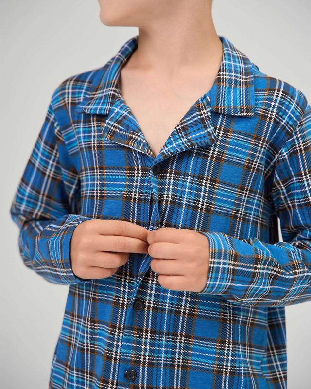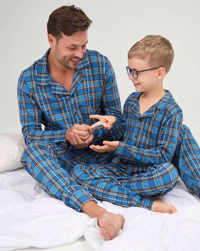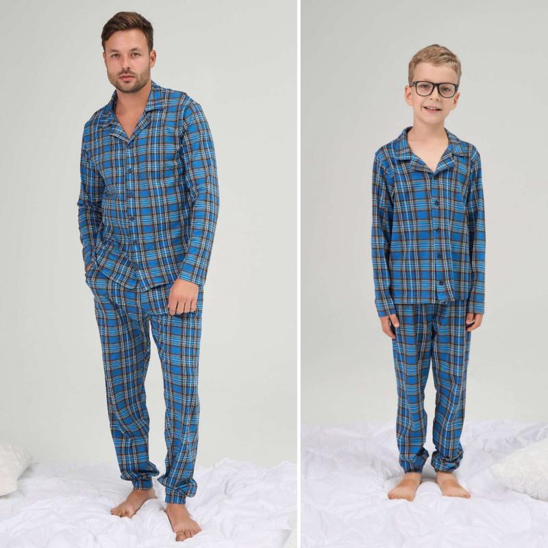 Домашний комплект пижама на мальчика подростка на пуговицах - клетка - family look