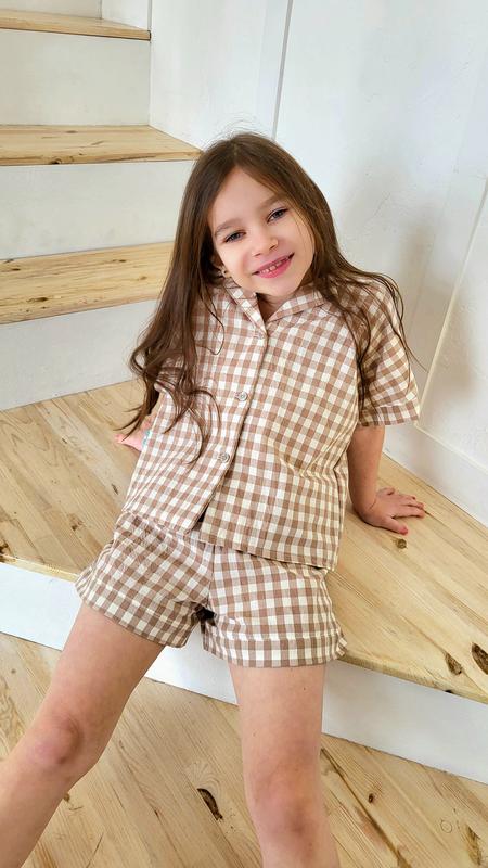 Повседневная детская пижама рубашка с коротким рукавом на пуговицах и шорты для дома и сна Детская пижама с коротким рукавом и шортами - это комфортная и стильная одежда для ночного отдыха и сна ребенка. Она создана специально для обеспечения максимального комфорта и свободы движений. Пижама в сочетании рубашка+шорты прекрасно подойдут на сезон весна-лето. Ткань хлопок, производства Турции Состав 100% хлопок Рубашка прямого кроя Застежка пуговицы Шорты пояс на резинке В ассортименте более 10 разных пижам на сезон Весна-Лето Перейти в каталог Все изделия упакованы в фирменную упаковку и коробку, поэтому Вам не придется платить за упаковку при получении, Вы оплатите только за пересылку товара. Все изделия сделаны с душой и любовью к деткам, поэтому мы гарантируем высокое качество и лояльность к каждому клиенту. А если не смогли определиться с размером или не знаете что лучше приобрести на подарок, то у нас есть Подарочные Сертификаты на 500грн, 1000грн, 1500грн. Им можно воспользоваться в любой момент, у него нет срока для использования. Остались вопросы? Не смогли определиться с размером? Хотите индивидуальный пошив? Нужна консультация менеджера? Мы обязательно все подскажем! Номер телефона *************, мы на связи 24/7! Почему покупают у Нас? - Отправляем товар в день заказа - Обмен и возврат - Бесплатная доставка - Фирменная упаковка, поэтому Вы оплачиваете только за пересылку - Гарантия и качества на все изделия - Менеджер на связи 24/7 - Лучшие цены, так Мы производители - Любим и ценим каждого клиента! Отдыхай всегда с нами! ,