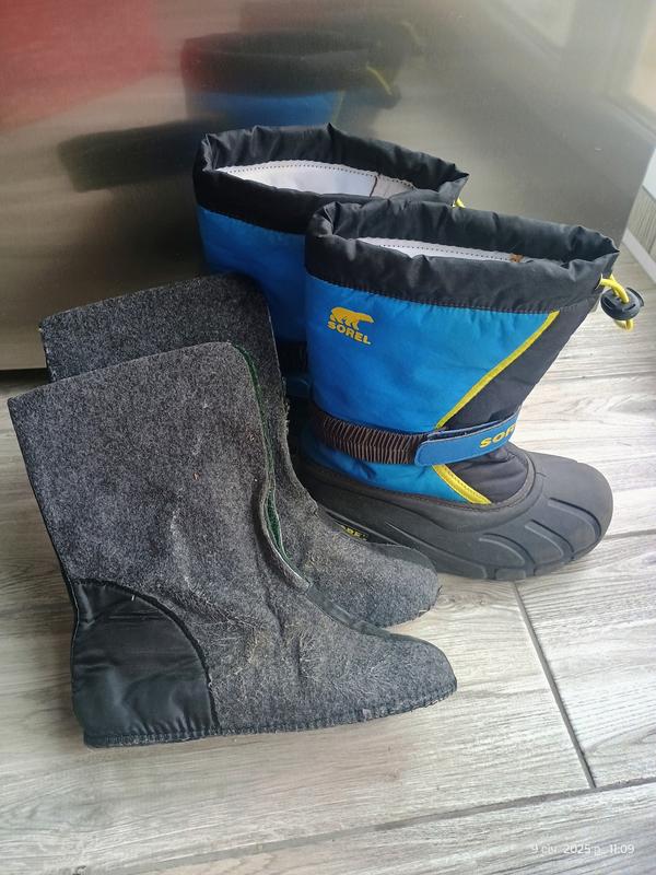 Внутри съемный валенок. Есть стягивающий шнурок, на подъеме регулирующая липучка. Очень удобные, теплые и не водопроницаемые! Размер вальянка внутри 20см. Без вальянки длина 22см. Питательные, страдящих дефектов отсутствуют, не рваные, не треснутые!