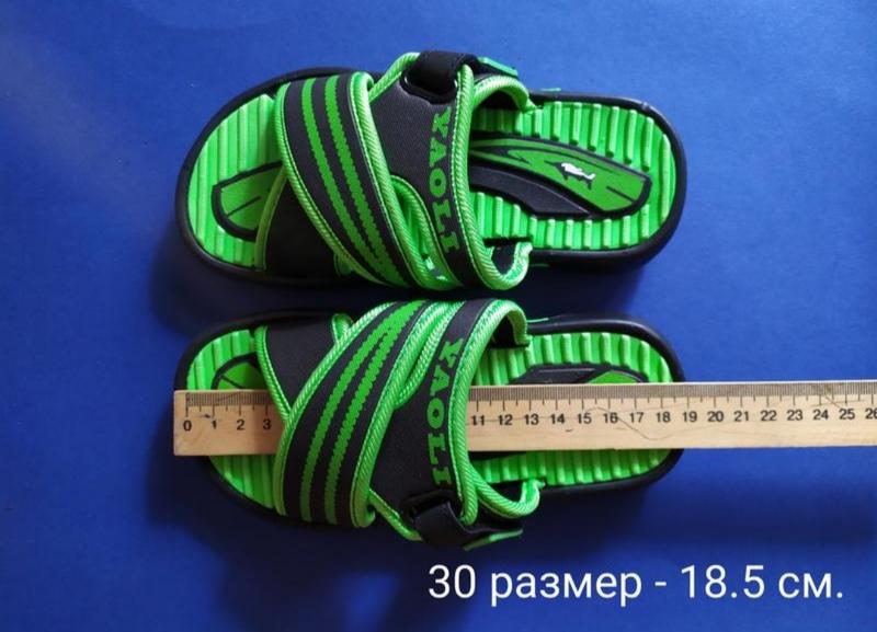 Материал верха: EVA + текстильная подкладка.Материал подошвы: EVAЗастежка: Липучка Размер: 30 ( 18.5 см.) - зеленые 31 ( 19.5 см.) - черные, синие