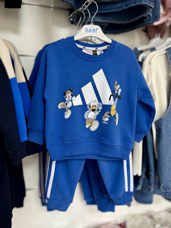Дитячий костюм Adidas з улюбленими героями Disney. Красивий яскравий синій колір, брендові смужки та дуже приємна мʼякенька тканина Тринитка-петля. Розміри повномірні! 92см 1-2 роки/ 98см 2-3 роки/ 110см 4-5 років/ 116см 5-6 років