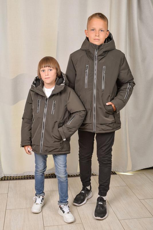 34 размер (122-128 см). Длина куртки по середине спинки - 61 см, ширина под проймой (под рукавами) - 47 см, ширина по плечам - 37 см, длина рукава - 47 см