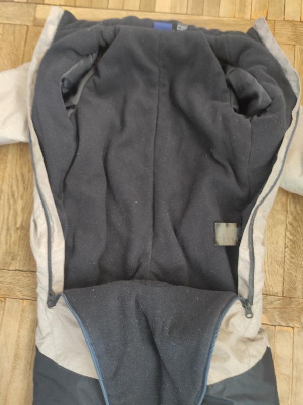 Комбинезон демисезонный на флисе (кроме рукавов и от колена). Водоотталкивающее покрытие.Замеры: длина - 73см, до паха - 49см, рукав - 31см, ширина - 37см.