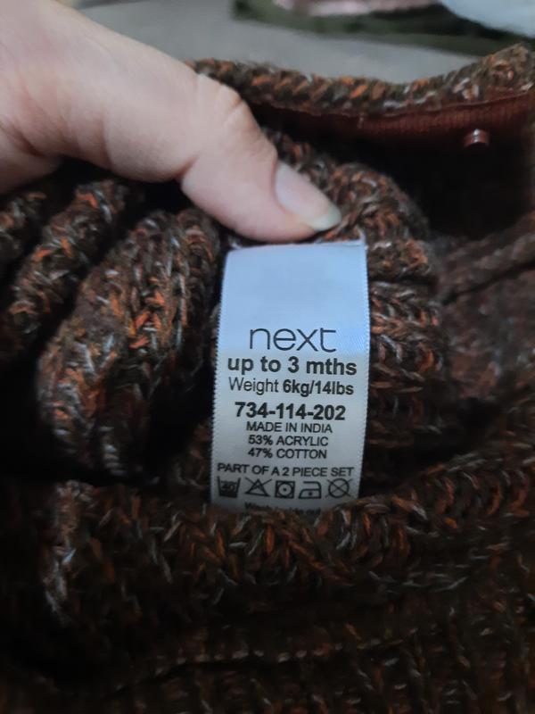 Комбинезон вязаный на 3 месяца, состояние отличный, нюанс: вылезла нить, потому что зацепились