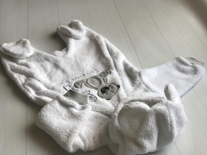 Ромпер с капюшоном из теплой махры 0-3м
