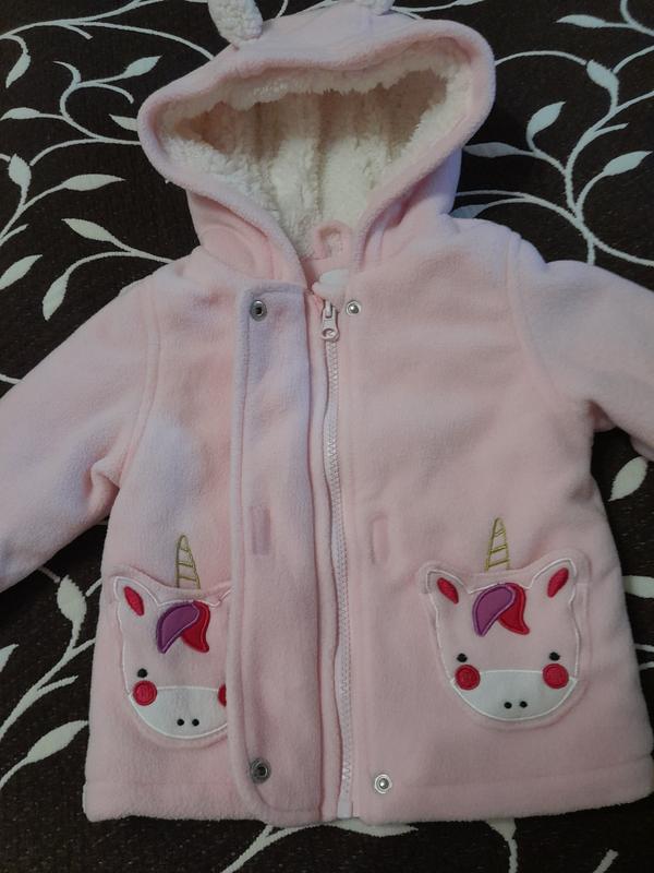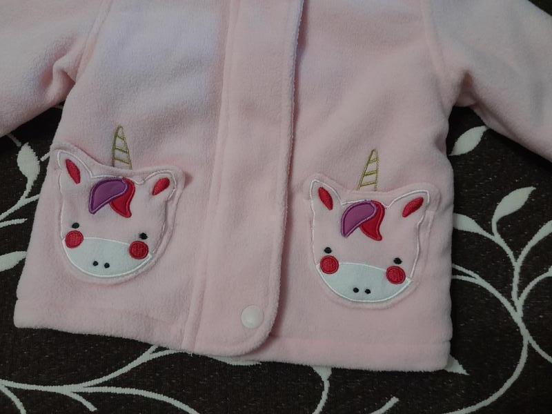 Куртка флисовая на меху для девочки 6-9 месяцев, фирмы Bluezoo. Замеры: длина 35см, полуобхват груди 31см, длина рукава от плеча 24см.