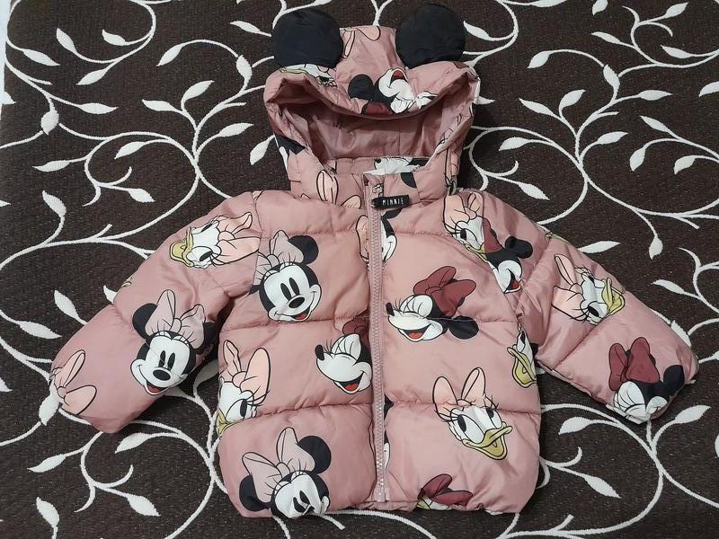 Куртка демисезонная на девочку 6-9 месяцев, фирмы H&M. На синтепоне. Замеры: длина 35см, полуобхват груди 31см, длина рукава от плеча 27см.