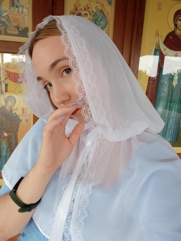Платок в храм, на кресты, венчание, причастие, не спадает с головы, покрывает плечи, подчеркивает женственность и создает нежный образ. Вы всегда можете быть уверены, что выглядите безупречно!