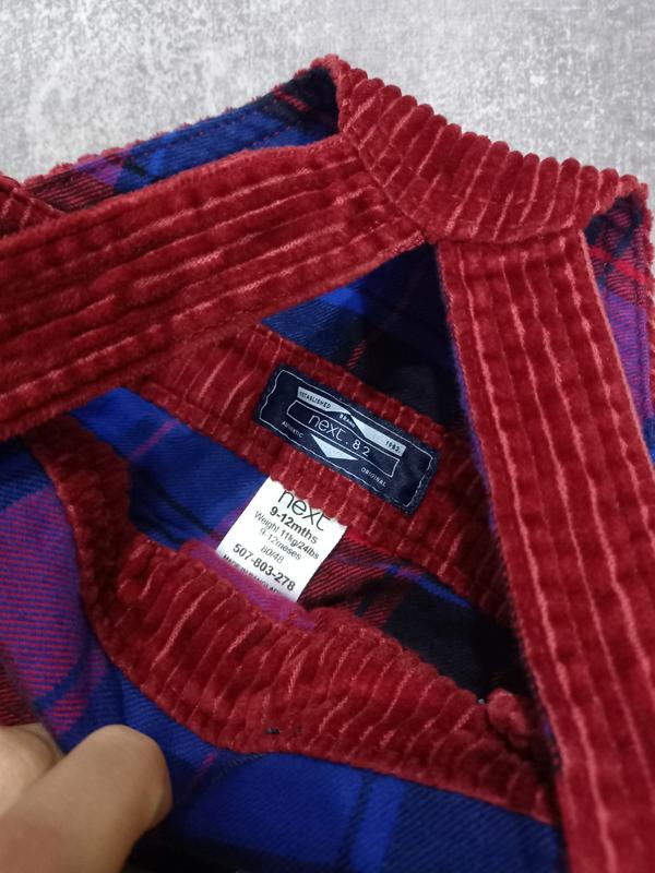 Стильный вельветовый комбинезон от Next для малыша. Насыщенный бордовый цвет. Крупный рубчик. Кнопочки на штанишках для удобной съемки и замены памперса. Отличное качество. Размер указан 9-12 мес. Все замеры по запросу. Новый с биркой.