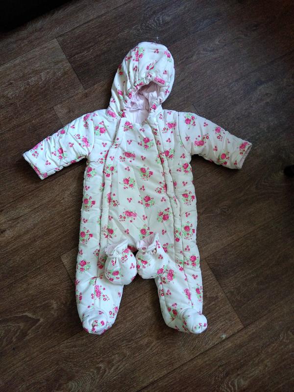 Демисезонные комбинезон на 6_9ммесяцев. Очень тёплый, проносили практически и всю зиму. Змейка идёт по ножке, что облегчает его одевание. В комплекте идут варежки на ручки.