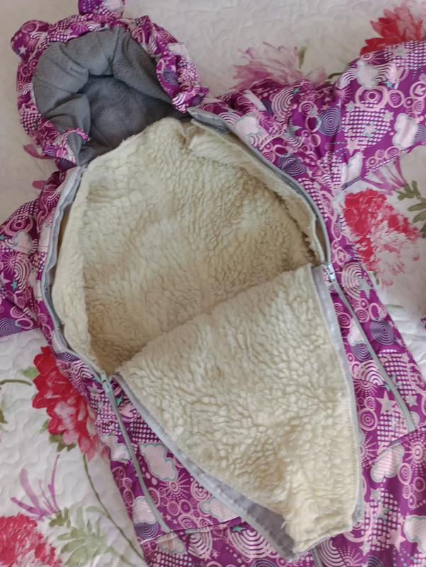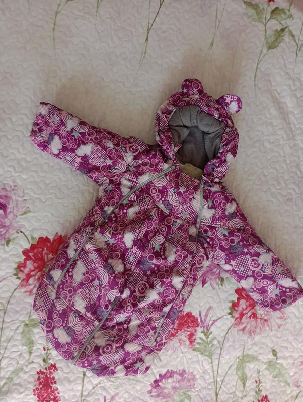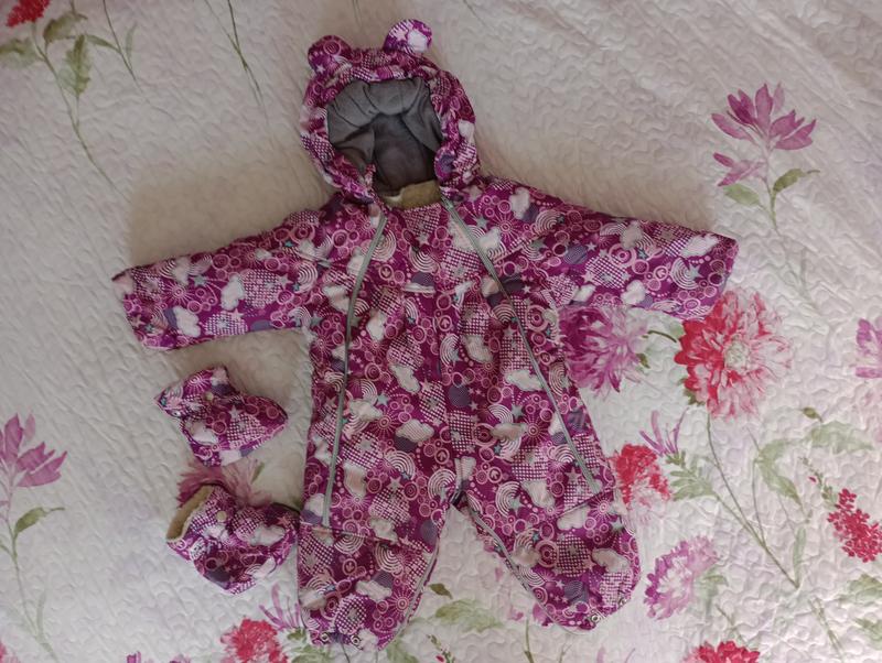 Продам комбинезон-трансформер на девочку. Производитель указывает, что размер от 56 до 86, но на полтора года будет короткий уже. Для малыша до года - идеально. В середине имеет съёмную подкладку из овчины, то есть подойдет как на осень, так и на зиму. Мы носили с 3 до 7 месяцев в каласку. Два раза одевали еще в 1 год и 2 месяца, а дальше стал короткий. Молнии на ножках можно перещепать и делать конверт для малыша. Капюшон на связках. Пинетки на кнопочках. Перчатки где-то потерялись, но мы ими не пользовались. Замеры на последнем фото.