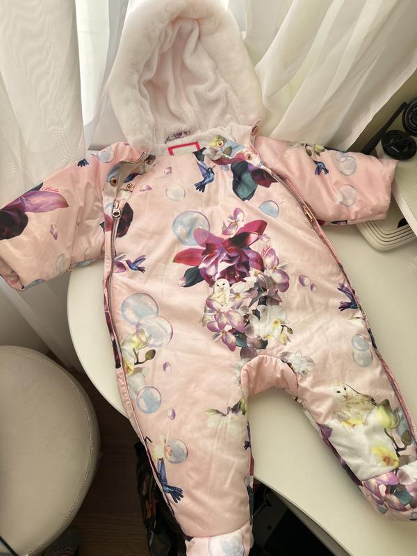Зимовий комбінезон ted baker рожевий в принт теплий гарний дівочий на 0-3 місяців