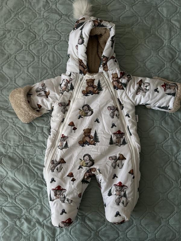 Зимний теплый комбинезон бренда MAMALISH. Ткань водоотталкивающая, утеплитель термолофт, подкладка хлопок. Пух на капюшоне снимается, поэтому комбинезон удобно стирать.