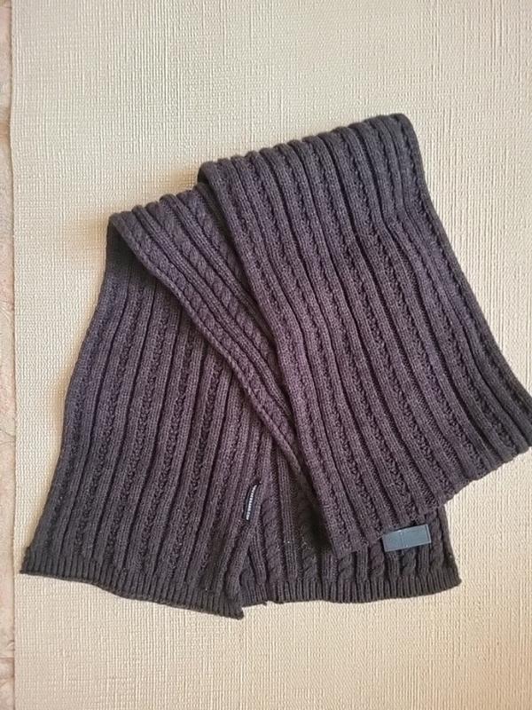 Теплый шарф мужской женский унисекс вязаный коричневый