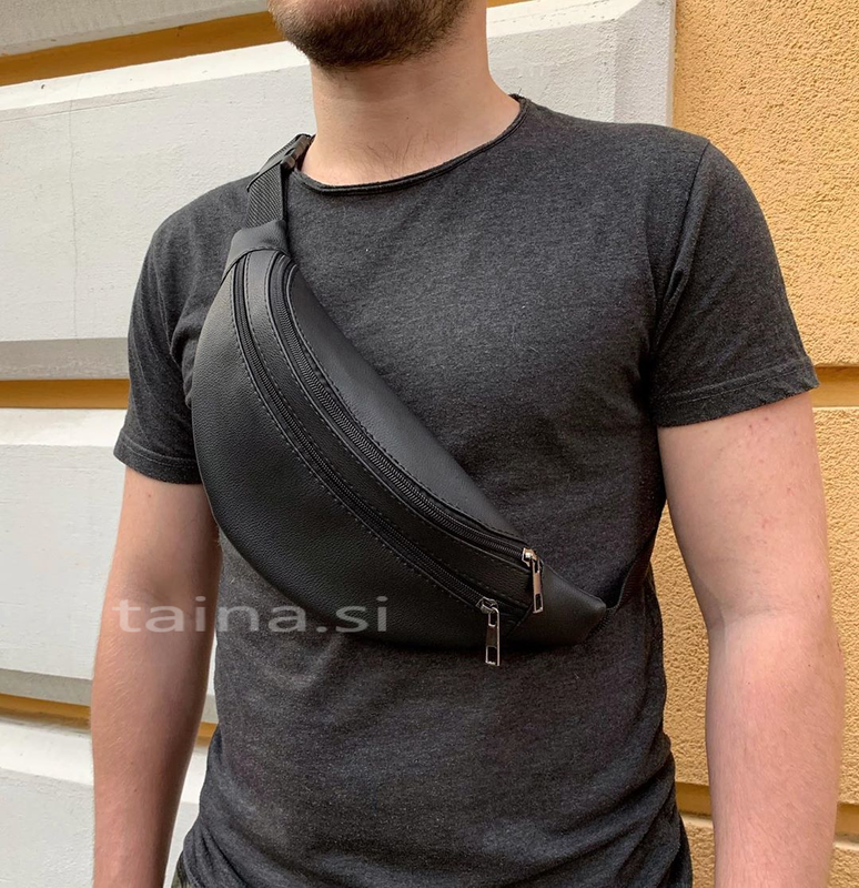 Качественная эко кожа. Два отделения с подкладкой, которые открываются молнией. Широкий регулируемый ремень, благодаря чему сумку можно носить не только на поясе, но и на груди. Максимальная длина ремня 108 см. Размер: Длина 36 см. Ширина 9 см Высота 12 см.