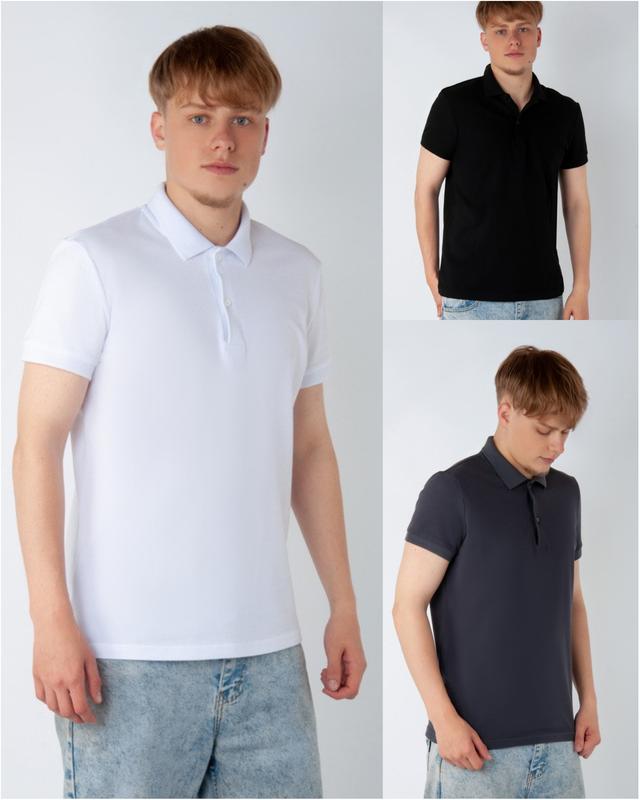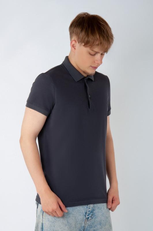 Классическая футболка поло прямого силуэта с коротким рукавом. Воротник и манжеты выполнены из вязаного плотного полотна. Застежка на двух пуговицах.