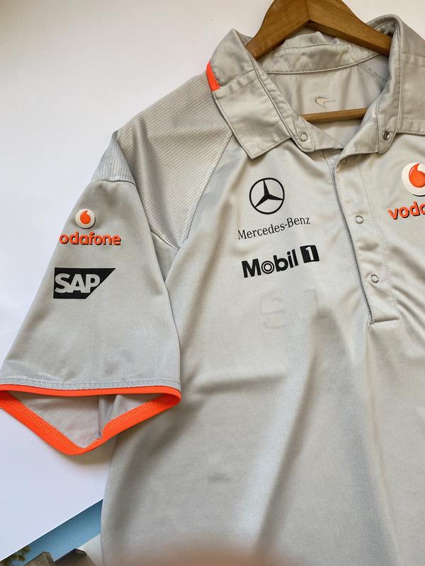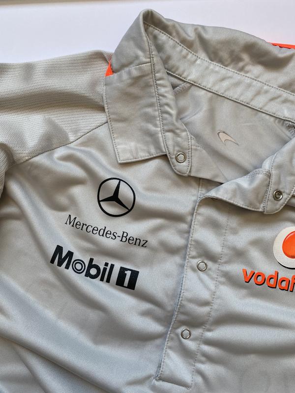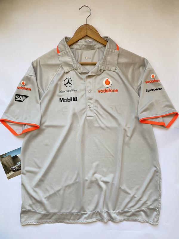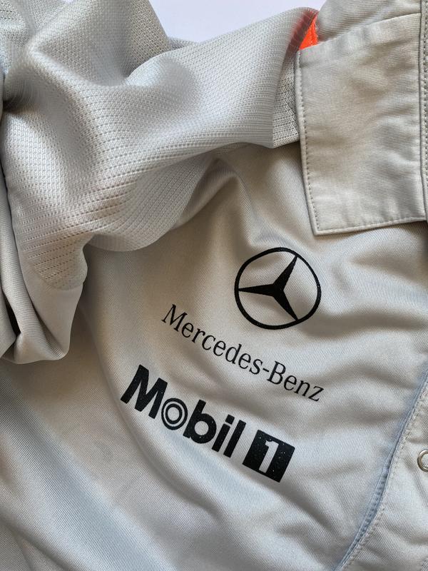 Мужская футболка поло Mercedes Benz серого цвета , спереди имеются заклепки Низ и плечи сеточка Оригинал