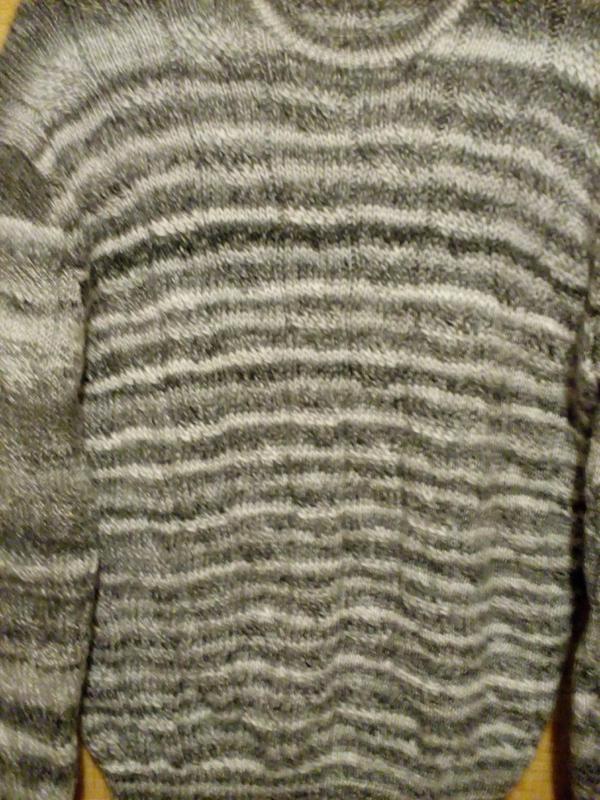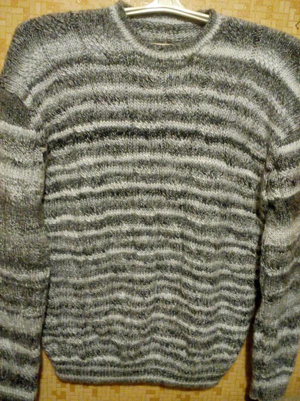 Светр пов'язаний з п/вовняної пряжі візерунком помилкова коса,об'єм 56, довжина 63, плечі 54, рукав 58