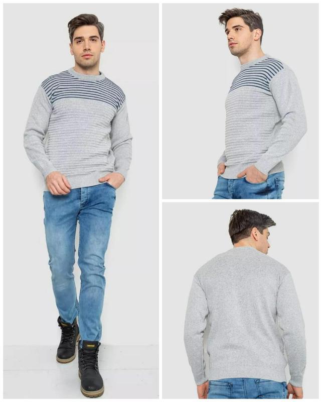 Свитер мужской в полоску, цвет светло-серый, 161R1029