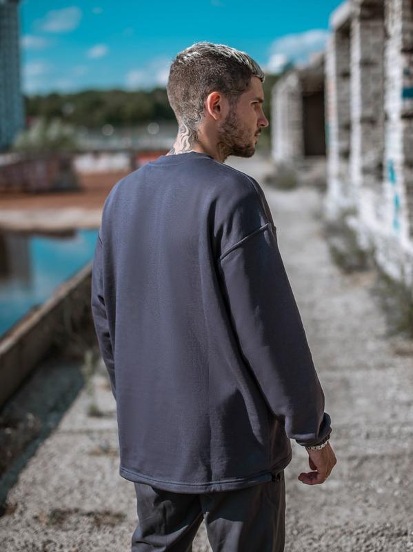 🔥Світшот оверсайз чоловічий Огонь Пушка Fred темно-сірий🔥