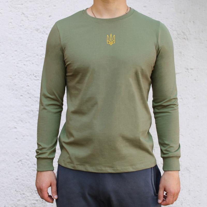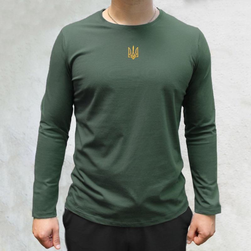 Лонгслів чоловічий натільний бавовняний з вишитим тризубом.