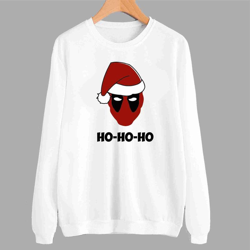Свитшот белый с новогодним принтом "deadpool. ho-ho-ho. дэдпул хо-хо-хо" push it