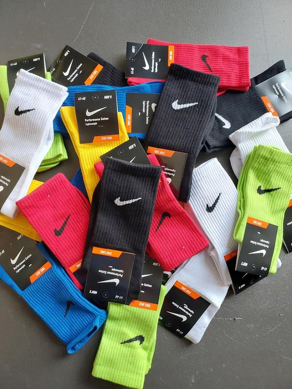 Высокие спортивные носки Nike/Найк, премиум качество! Кольори на вибір: білі, чорні, червоні, сині, жовті, зелені (салатові). 55 грн/пара, від 10 по 50 грн. Набір в коробці з 3 пар - 180 грн; Набір в коробці з 4 пар - 240 грн; Набір в коробці з 5 пар - 300 грн. Склад тканини: 80% Сotton, 16% Nylon, 4% Spandex. Розмір: 36-40, 41-45 (24-29 см.) Виробник - Туреччина. Доставка по Україні 1-3 дні, в Київ 1 день. Відправлення посилок день в день до 20:00, Сб/Нд - до 19:00. Весь асортимент можете переглянути в моїх товарах.
