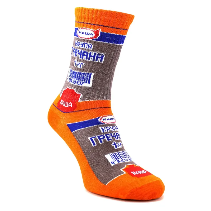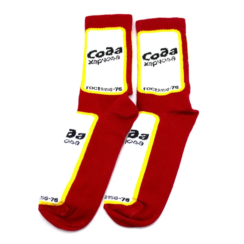 Оригинальные носки с изображением популярных пищевых и не пищевых продуктов. (Агитационный набор депутата) состоит из: Сода пищевая, соль каменная, бумага туалетная, молоко сгущенное, крупа гречневая, сахар кристаллический. Обнови свой стиль или сделай оригинальный подарок!