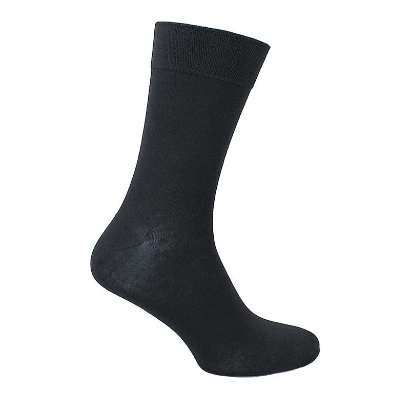 Классические мужские носки в черном цвете. Модель высокая, имеет цепкую резинку, что позволяет носкам идеально держаться на ноге во время ежедневных нагрузок. Бамбук способен активно впитывать влагу и препятствует распространению бактерий. Подходят на любое время года. Бамбуковая пряжа более стойкая для ежедневного использования, что увеличивает долговечность носков.
