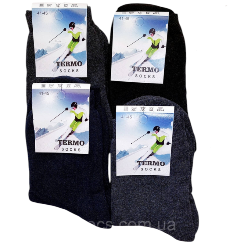 Носки мужские - термо, зимние, махровые 41-45р. 85% хлопок. Цвета в упаковке: разные / темные. Производство: Украина. Цена указана за упаковку из 4 пар.