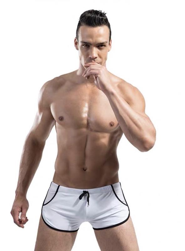 Плавки-шортики боксерки мужские с передними карманчиками и стягивающим в поясе шнурком.
