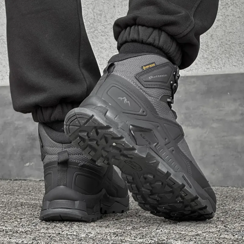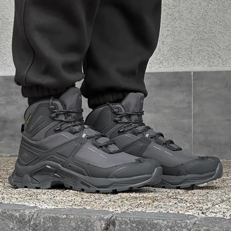 Мужские зимние удобные влагостойкие ботинки с мехом,черные,серые,полосные, походные, зима пайма