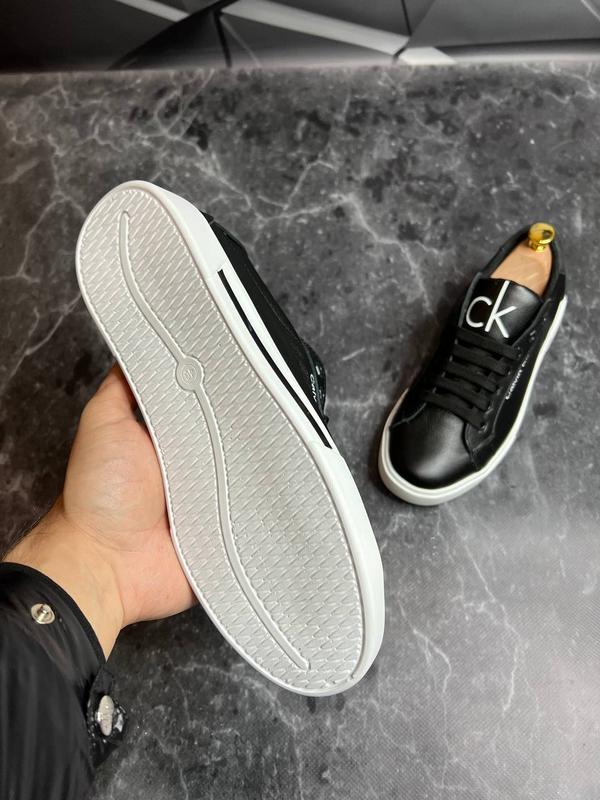 Стильные кеды черные Кельвин Кляйн Calvin Klein кожаные мужские (весна/осень/лето Деми/демисезонные,лето) весенние, осенние, летние