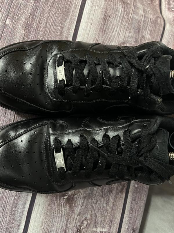 Оригинальные крутые мужские кроссовки Nike air Force 1 в чёрном цвете кожаные