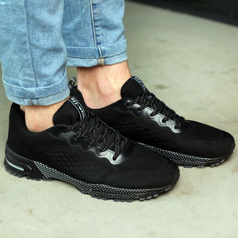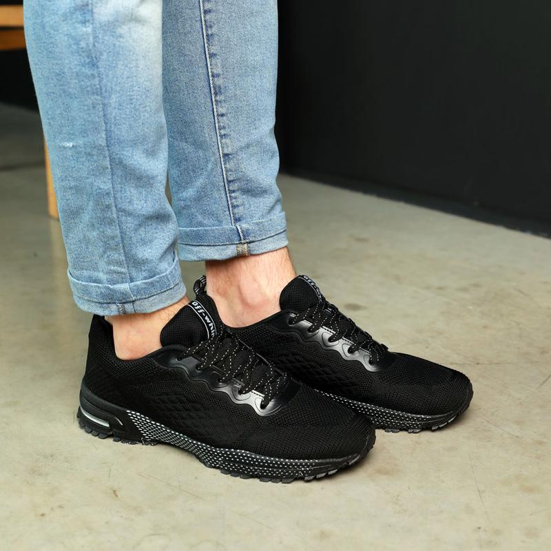 Мужские кроссовки 585004 в стильном черном цвете. За счет дышащего материала поверхности - дыхательной сетки - они обладают исключительной легкостью. Внутренняя подкладка и стелька - текстильные, обеспечивают удобство при ходьбе. Благодаря своей функциональности пар подходит как для ежедневной носки, так и для активных тренировок. Утолщенная рифленая подошва обеспечивает высокий уровень амортизации и сцепления, что гарантирует комфорт.