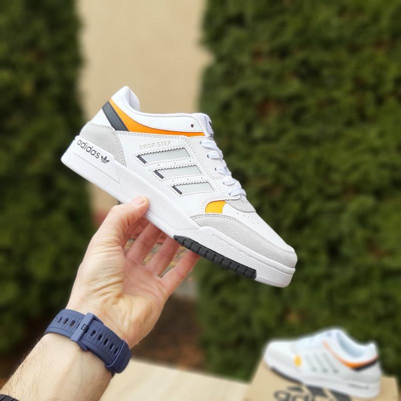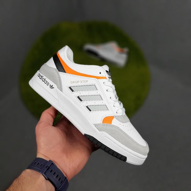арт 11141Adidas Drop Step Белые с серым и оранжевымпроизводитель ВьетнамВерх: кожа/замша, подошва резина Размеры 41-46 41й(26см), 42й(26,5см), 43й(27,5см), 44й(28см), 45й(28,5см), 46й(29см)