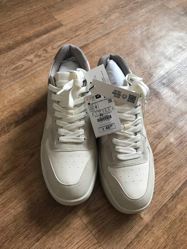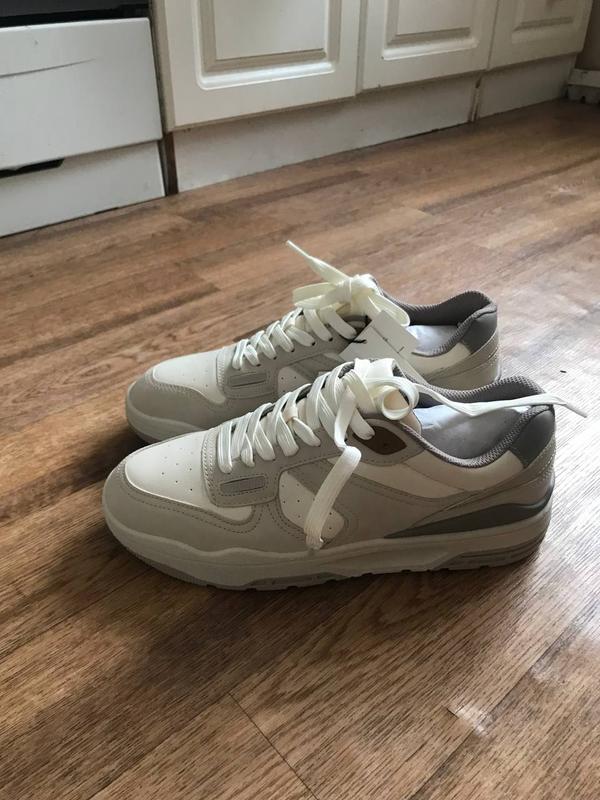 Кроссовки с цветовым сочетанием и материалов. Шесть пар отверстий для шнурков на подъеме и толстая фигурная подошва с небольшим тракторным эффектомРазмер 42, длина по стельке 27 смЦвет - бежевый