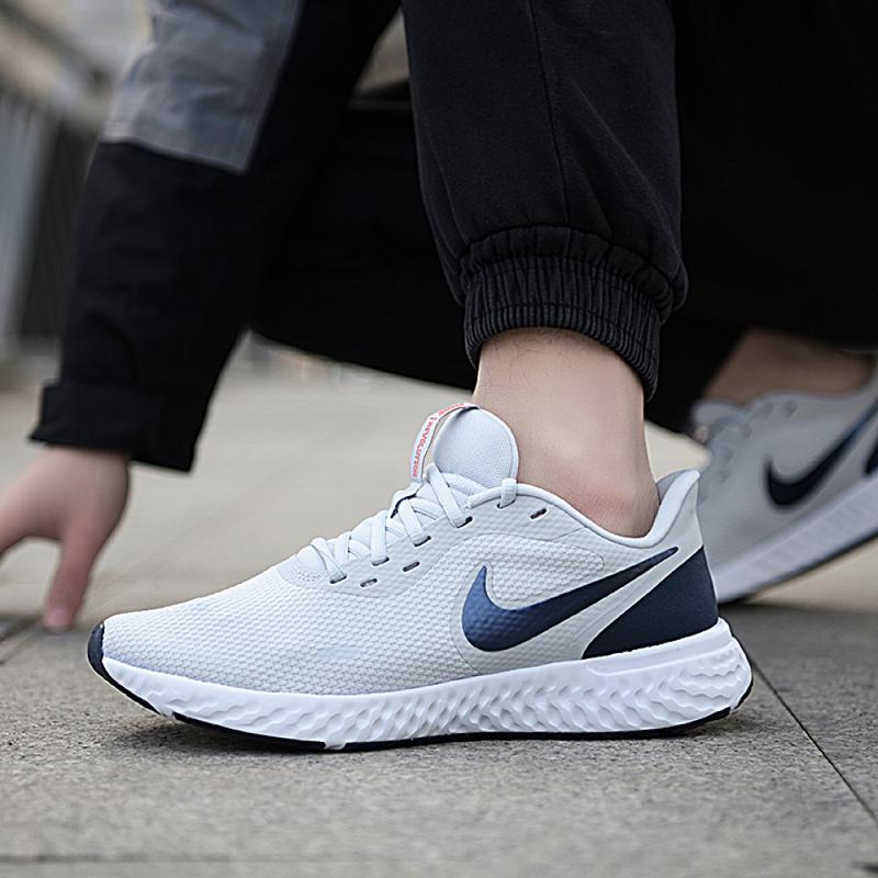 Кроссовки blush nike revolution 5 bq3204-018, р.42,5 eu серые с синим