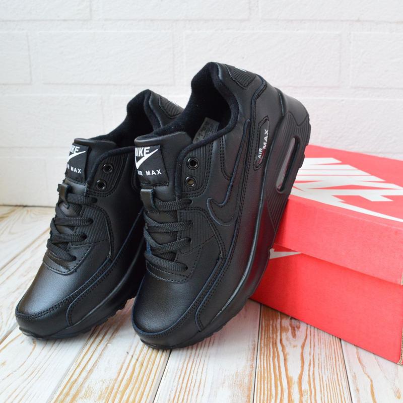 Nike air max 90 чорні, шкіра кроссовки найк аир мпкс кросовки аір макс