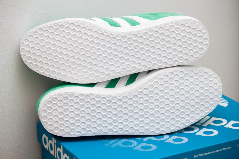 Новые. Оригинальные. Куплены в официальном магазине Adidas. Премиальное переиздание культовой модели Gazelle 1985 г. с использованием высококачественной замши. На ощупь очень приятная. Замша из обычных газелей и рядом не стоит. Вживую смотрятся супер. Пропитка, яркий зеленый цвет. В комплекте дополнительная пара белых шнурков. Коробка отличается также от базовых версий.