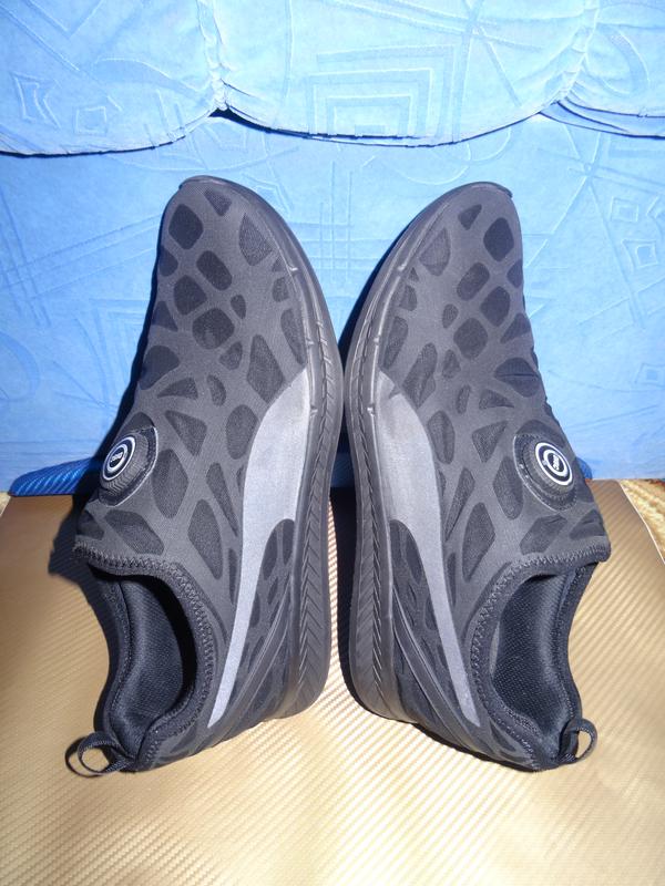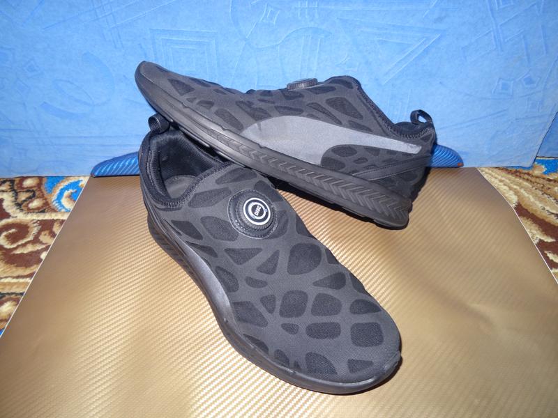 - система шнуровки Puma Disc. система скрыта и расположена между материалами, поэтому достклепенный лишь бинокранок для шнуровки, система примерно такая как и Boa. но не нужно нажимать и тянуть на себя, достаточно закрутить по часовой стрелке чтобы зашнуровать и сделать движение против часовой стрелки, чтобы расшнуровать, очень крутая система, рекомендую от себя так как сами такие и в семье используем