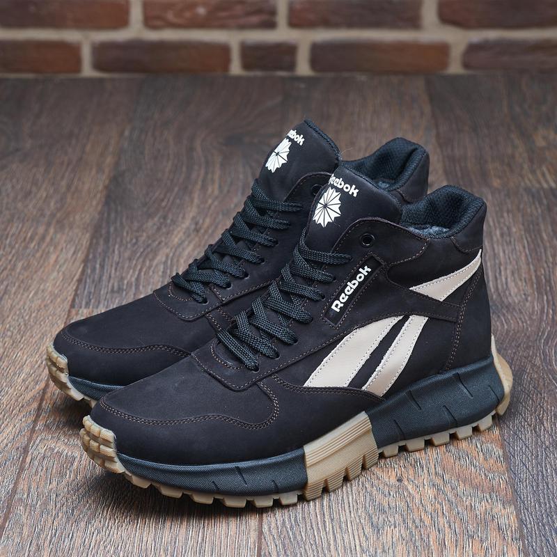 Reebok коричневые зимние кожаные кроссовки на меху, Мужские высокие
