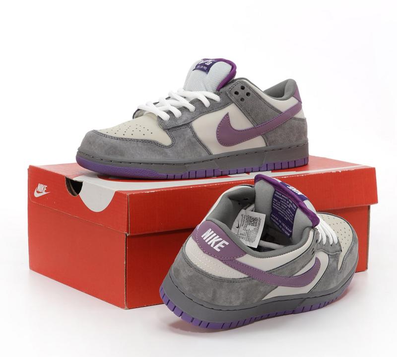 Стильные и универсальные кроссовки Nike Dunk Low в серо-фиолетовой расцветке. Верх выполнен из качественной замши, что обеспечивает долговечность и комфорт. Классический низкий силуэт и прочная подошва делают эту модель идеальным выбором для повседневной носки