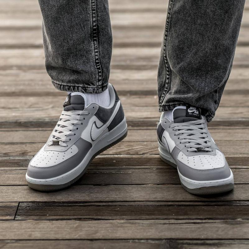 Nike Air Force Suede White\Grey Код : 1070 Производитель : Вьетнам (топ качество ) Размерная сетка : 40-45Материал : Кожа , Замша , Текстиль .Подошва : Резина , Прошиты. Коробка : Найк ,пергаментная бумага.