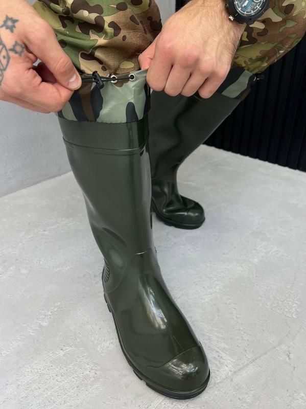 Сапоги резиновые мужские цельно литые со шнуровкой олива