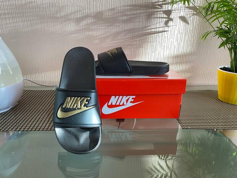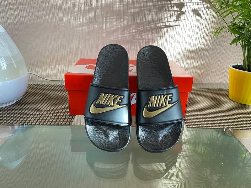 Новая позиция 🇺🇦🇺🇦🇺🇦Код - D368Nike черно-золотые (шлепанцы)