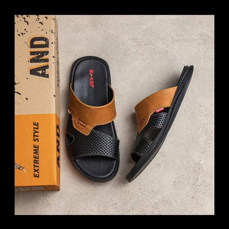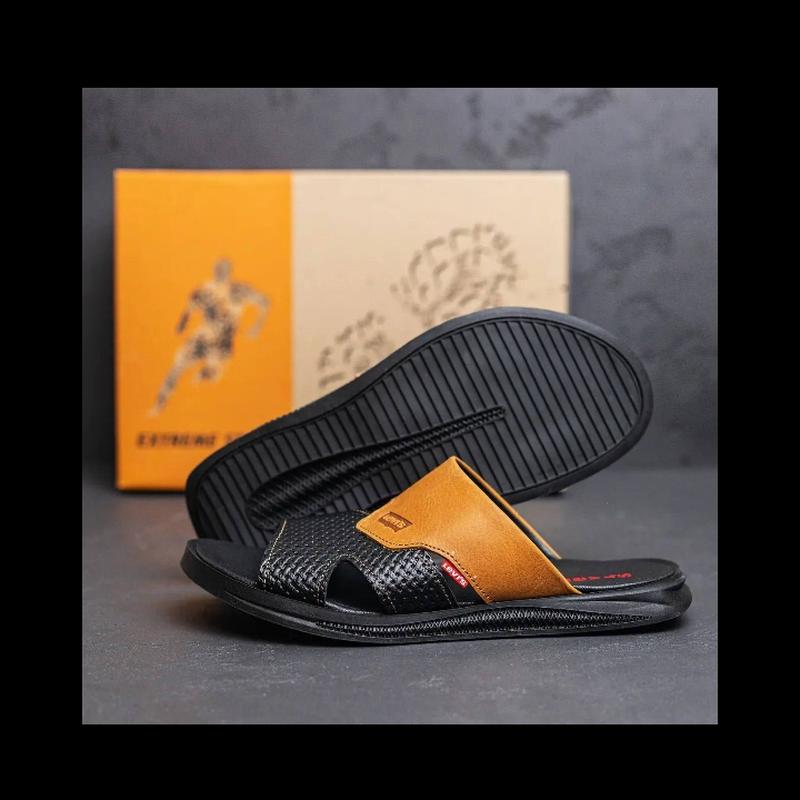 Мужские кожаные летние шлепанцы-сланцы Levis